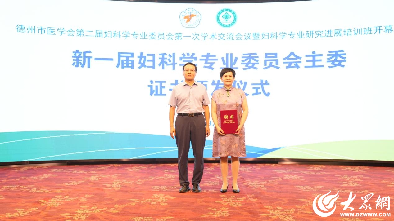 德城区卫健局党组书记、局长孙祥忠为副主委颁发证书